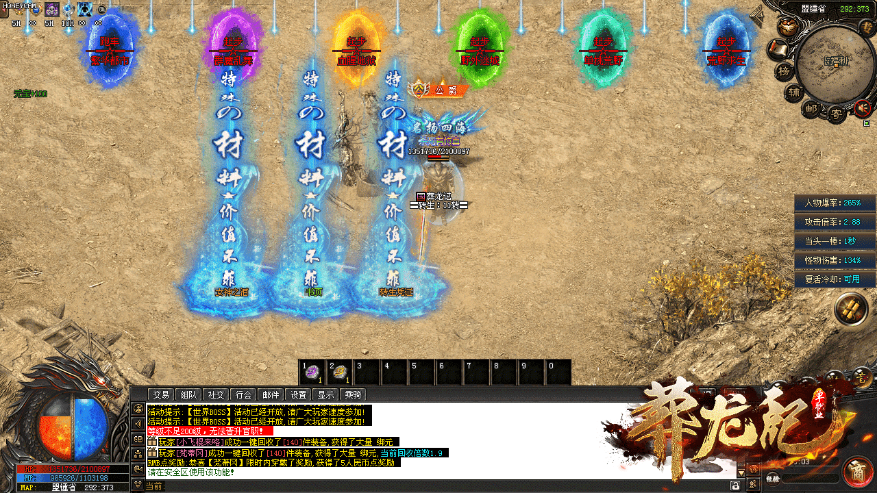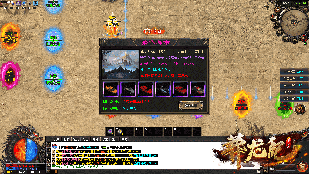 日充即可领取本服神器,并且可以进入专属地图,